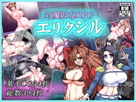 さきとこなつの壮絶な死闘を描いた敗北RPG。 基本CG34枚、総数394枚 24シーン。 〜あらすじ〜 対魔師である青い方(さき)の弟が不治の病で死にそうなので、親友の赤い方(こなつ)と共に、カルト教団が生み出した霊薬エリクシルを求め、異形の怪物ひしめく島へと乗り込むのだった。以上ッ! 音声はフルボイスではなく、バックグラウンドの喘ぎ声2人分数種類となります。 本作はRPGツクールMVで制作されています。必ず体験版で動作確認をお願いします。 ●フロントビュー、シンボルエンカウント 敗北RPG 孤島を探索し、霊薬「エリクシル」を手に入れる事が最終目的です。 実質一本道なので、さきとこなつのストーリーを追って進めて行けばクリアできます。 ●敗北のイメージシステム いつでも回想可能 初見の敵を撃破すれば、敗北した時の無残な末路を想像することにより、CG閲覧が可能となります。 CGはメニューの回想コマンドか、タイトル画面から閲覧可能です。 ●敵はやや強め。レベル上げは不要 初見時の敵はやや強めのバランスです。CGを回収していけば、それなりにレベルが上がっていきますので レベル上げの苦労はないかと思います。 ※バグの修正などで、アップデートする可能性があります。